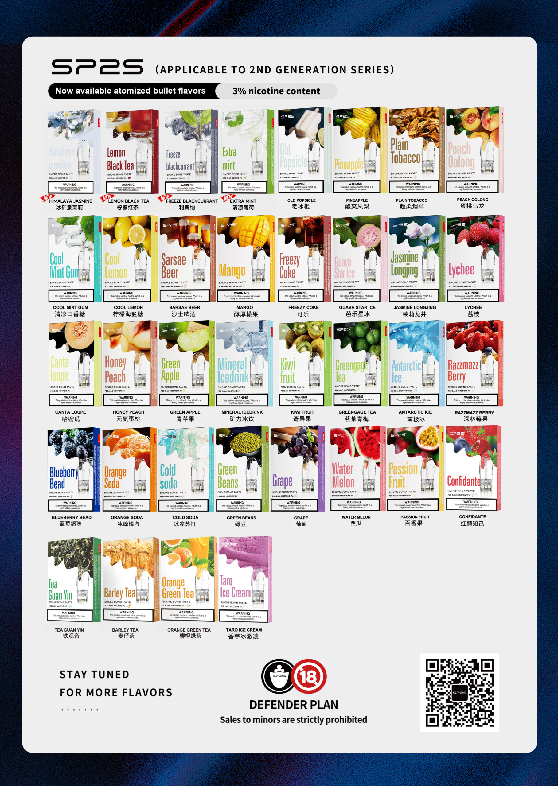 結語:SP2煙彈以科學配比與人性化設計,實現風味多樣性與品質穩定性的平衡。無論是果味愛好者、茶飲推崇者,或是追求新奇體驗的用戶,均能從30餘款口味中找到專屬選擇。未來,SP2將持續追蹤消費趨勢,推動電子煙行業的品味革命。